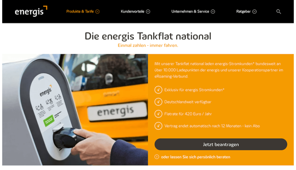 | Leistungen | – Nur für energis Stromkunden – Deutschlandweites Laden an öffentlichen Ladesäulen (eRoaming-Verbund) |