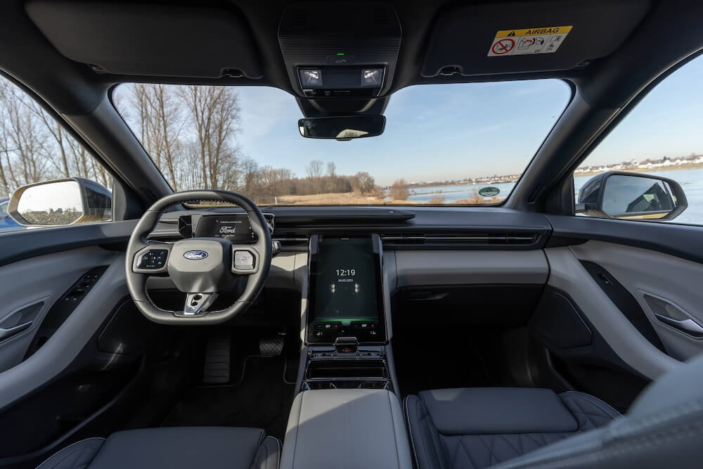 Im Inneren zeigt sich der Ford Capri aufgeräumt und gut durchdacht. Der Innenraum kombiniert klare Linien mit einem guten Material-Mix und einer digitalen Bedienwelt. Herzstück ist das 14,6 Zoll (ca. 37 Zentimeter) große, schwenkbare Infotainment-Display in der Mittelkonsole. Direkt vor dem Fahrer liefert ein kompaktes 5,3 Zoll (ca. 13 Zentimeter) Digitalcockpit alle wichtigen Fahrerinformationen auf einen Blick. Stilvolle Design-Details und eine saubere Verarbeitung der Materialien sorgen für ein modernes, stimmiges Ambiente.